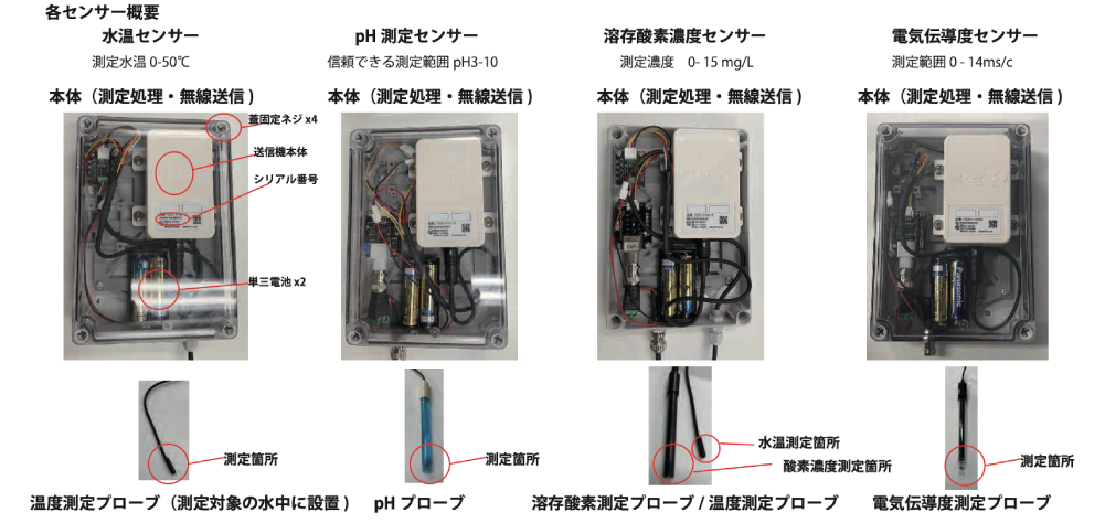 - 電気電濃度などを観測するので水槽内にある生物数(微生物)数などの変異も観測できます。また、PH、溶存酸素量を比較することでで毒性の強いアンモニアを素早く計測できます。