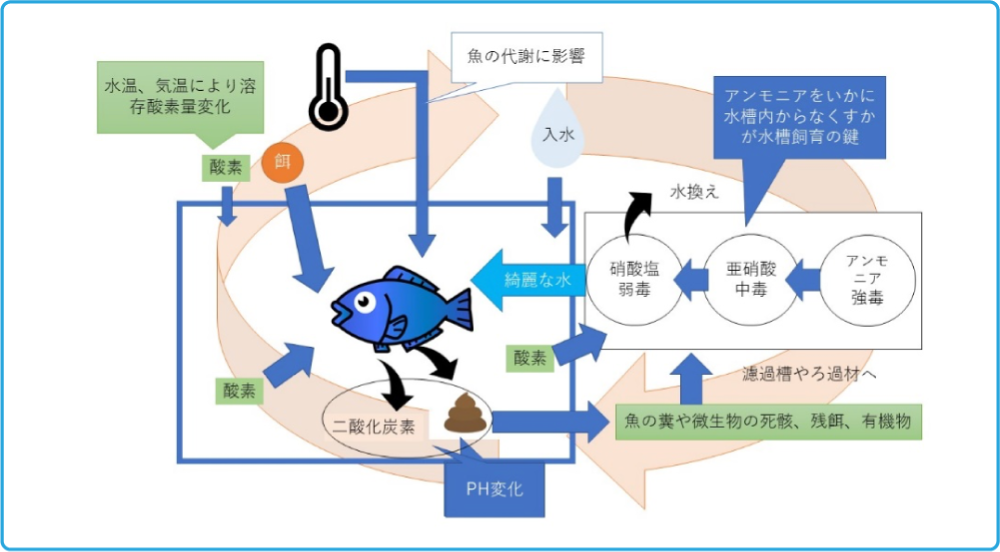 - 魚は変温動物であり、動物のなかで最も水温上昇や酸素量の低下、環境の悪化などに弱い生き物です。そのため、水温管理やPH(アンモニア値)を計測することで事前に対処することで被害を未然に防ぐことができます。